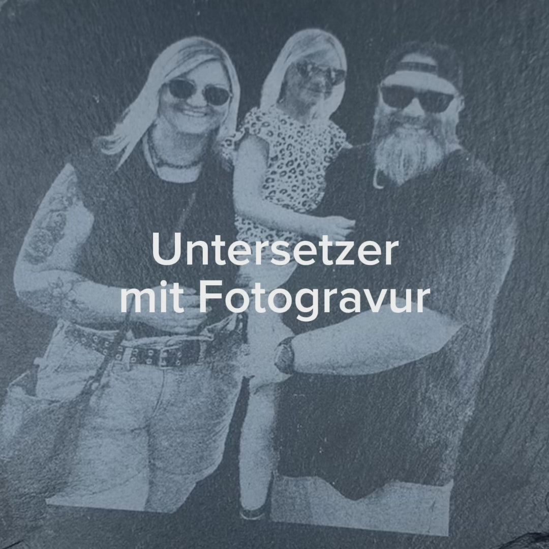Verleihe deinem Zuhause oder deinem Geschenk eine persönliche Note mit unserem hochwertigen Schiefer Untersetzer mit individueller Fotogravur. Jeder Untersetzer wird aus echtem, naturbelassenem Schiefer gefertigt und mit modernster Lasertechnik graviert – so entsteht ein stilvolles und langlebiges Erinnerungsstück, das garantiert begeistert.
